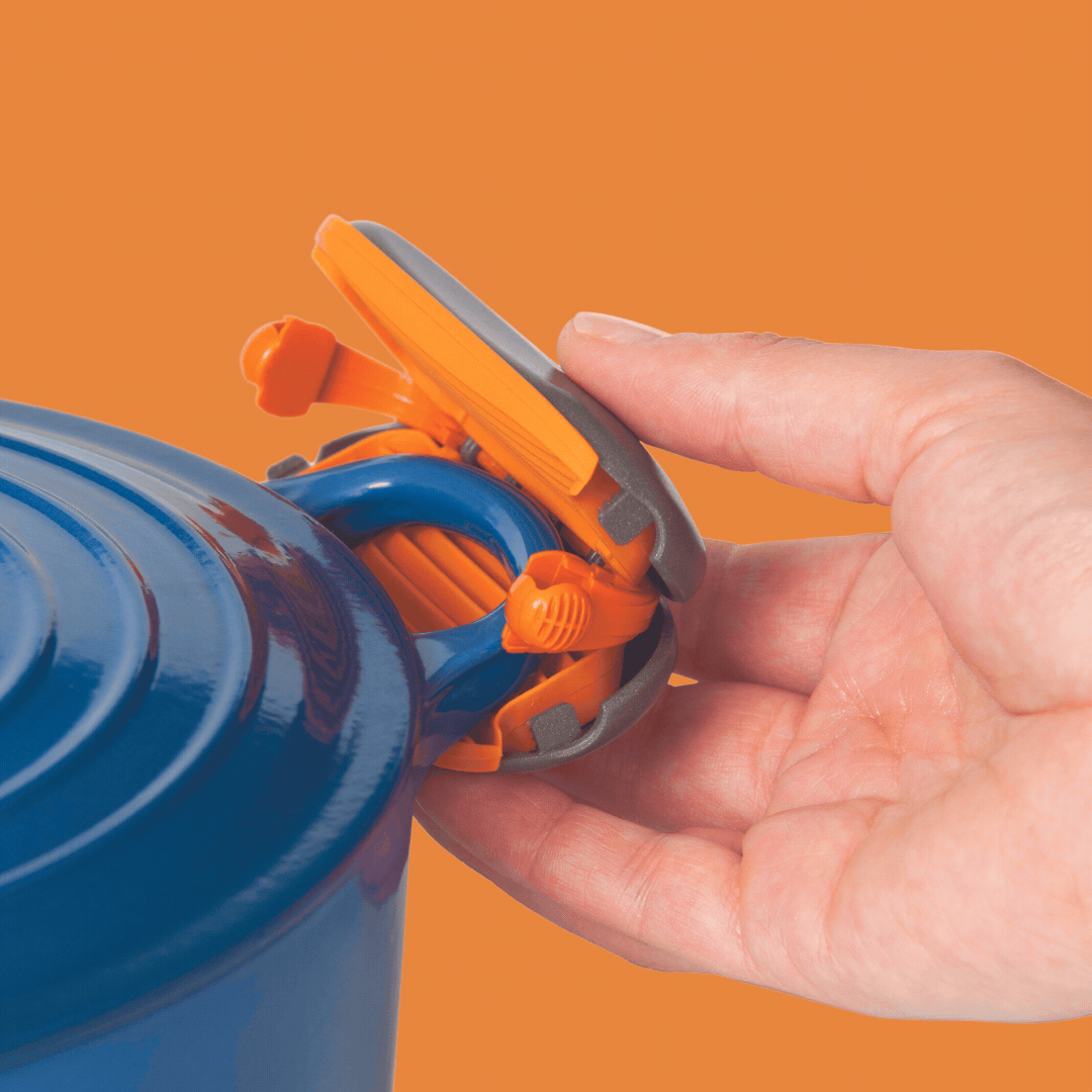 Our superstar double ratchet system is like having a tiny, heat-resistant bouncer for your pot handles. This clever little system locks into place with precision, adjusting to fit handles of all shapes and sizes.
